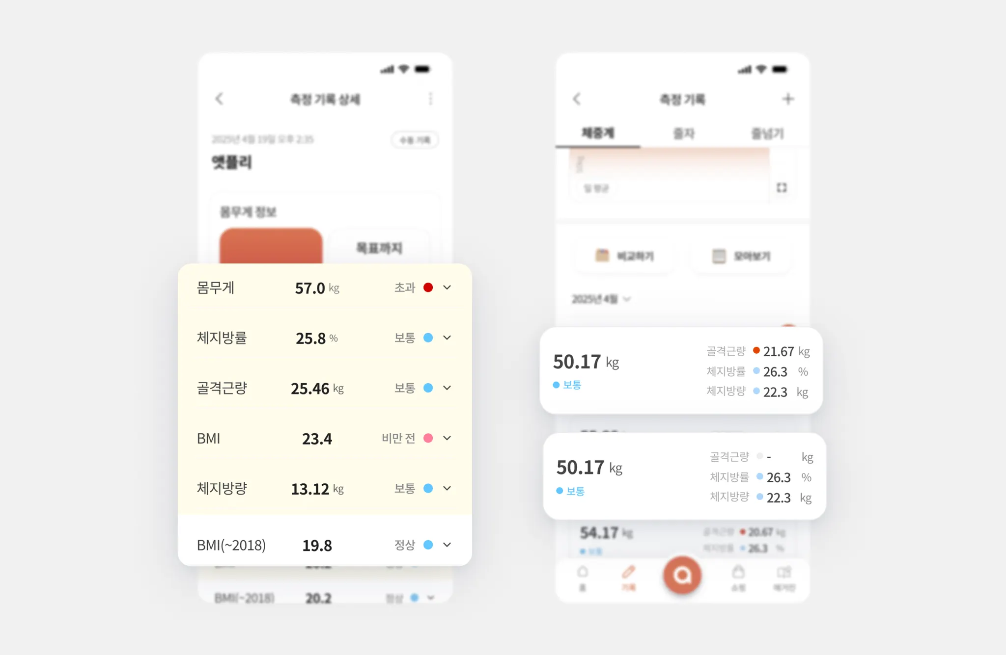 앳플리 스마트 체중계가 없을 때나, 타사 체중계로 측정한 기록도 더욱 자유롭게 관리해 보세요!