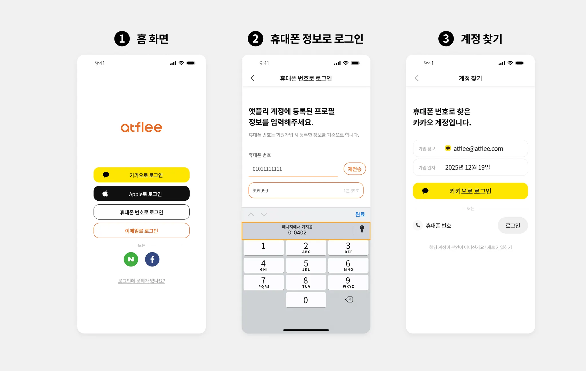 이미 가입된 계정이라면, 추가 설정 없이 휴대폰 번호만 입력하면 바로 로그인할 수 있으니 더 편리하게 앳플리 앱을 이용해 보세요!