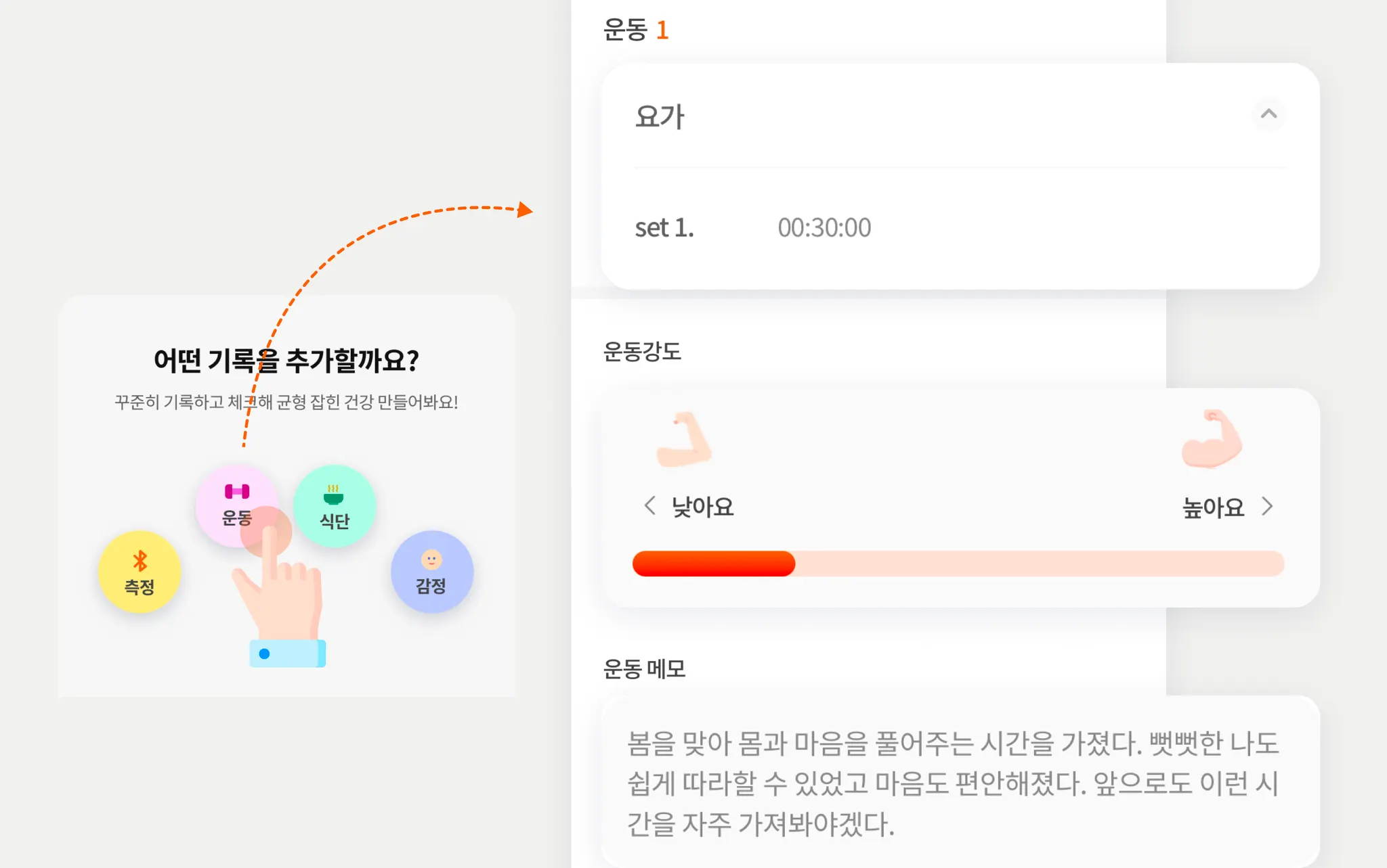 내 몸에 집중한 시간, 운동 기록에 쌓아가요