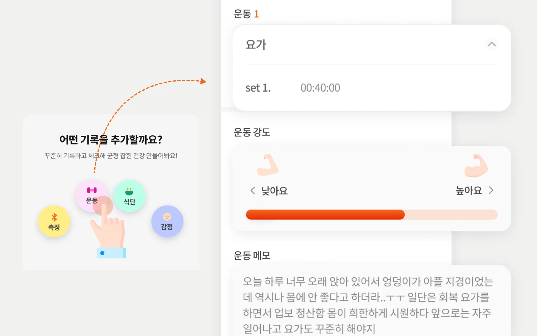 내 몸에 집중한 시간, 운동 기록에 쌓아가요